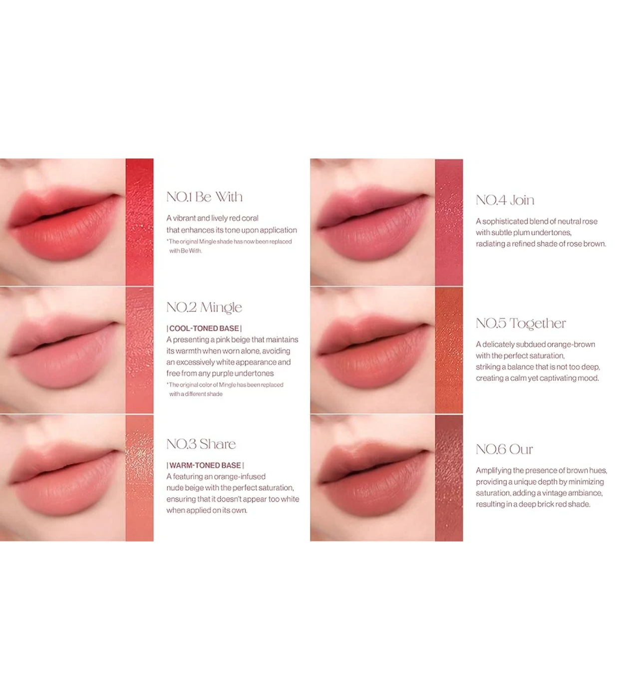 Este tinte labial de alta cobertura ofrece un acabado mate aterciopelado y suave, ideal para lograr un maquillaje sutil pero sofisticado al estilo coreano.