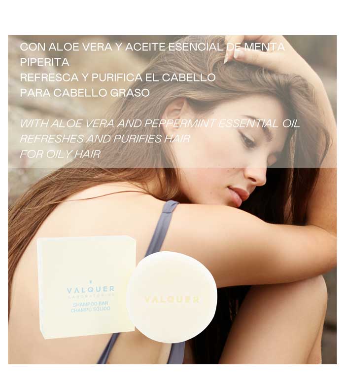 Champú solido Pure para cabellos grasos, formulado con menta piperita y aloe vera.