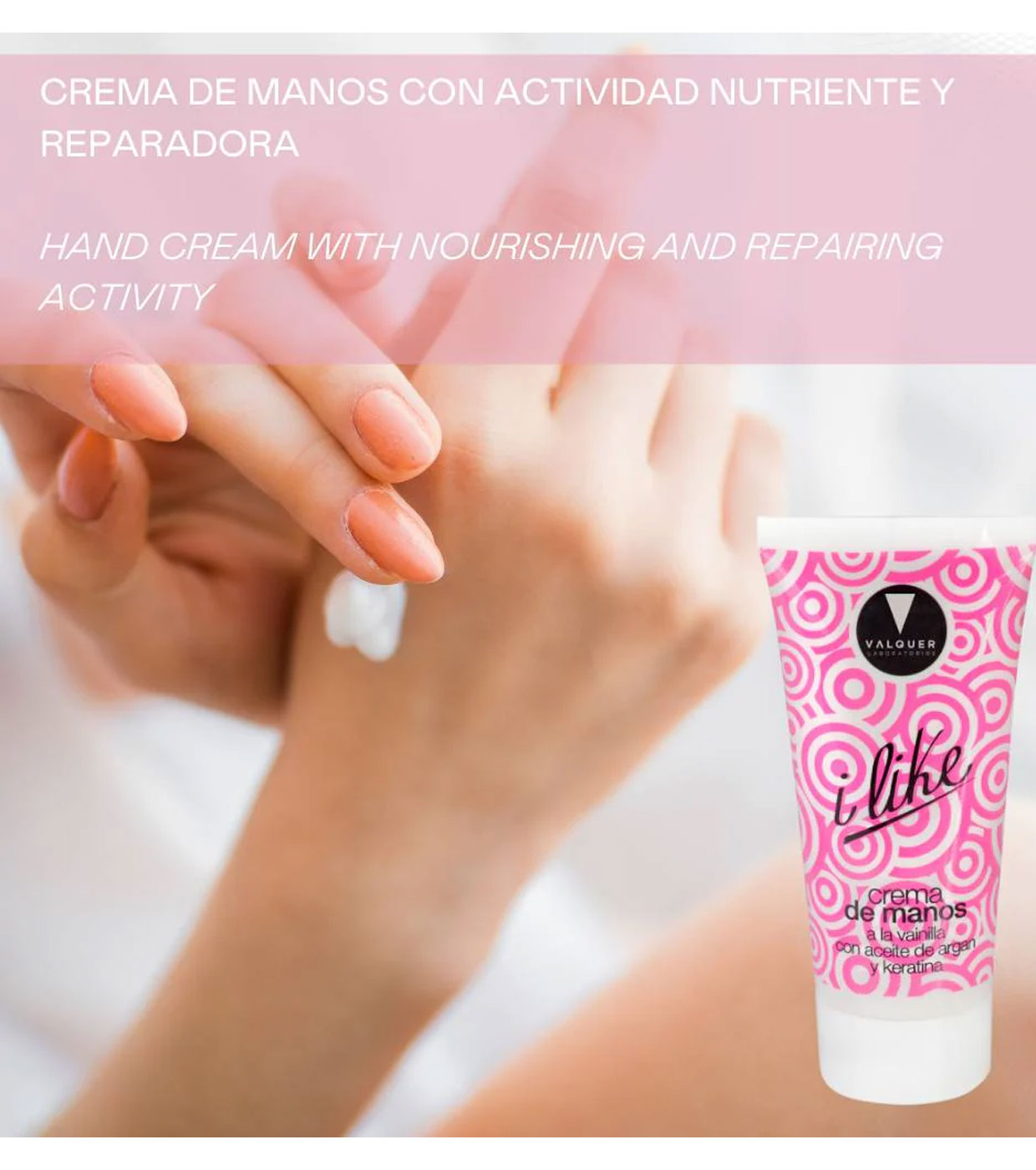 Crema reparadora de manos 2.0 con aceite de argán y keratina y sutil toque de vainilla.