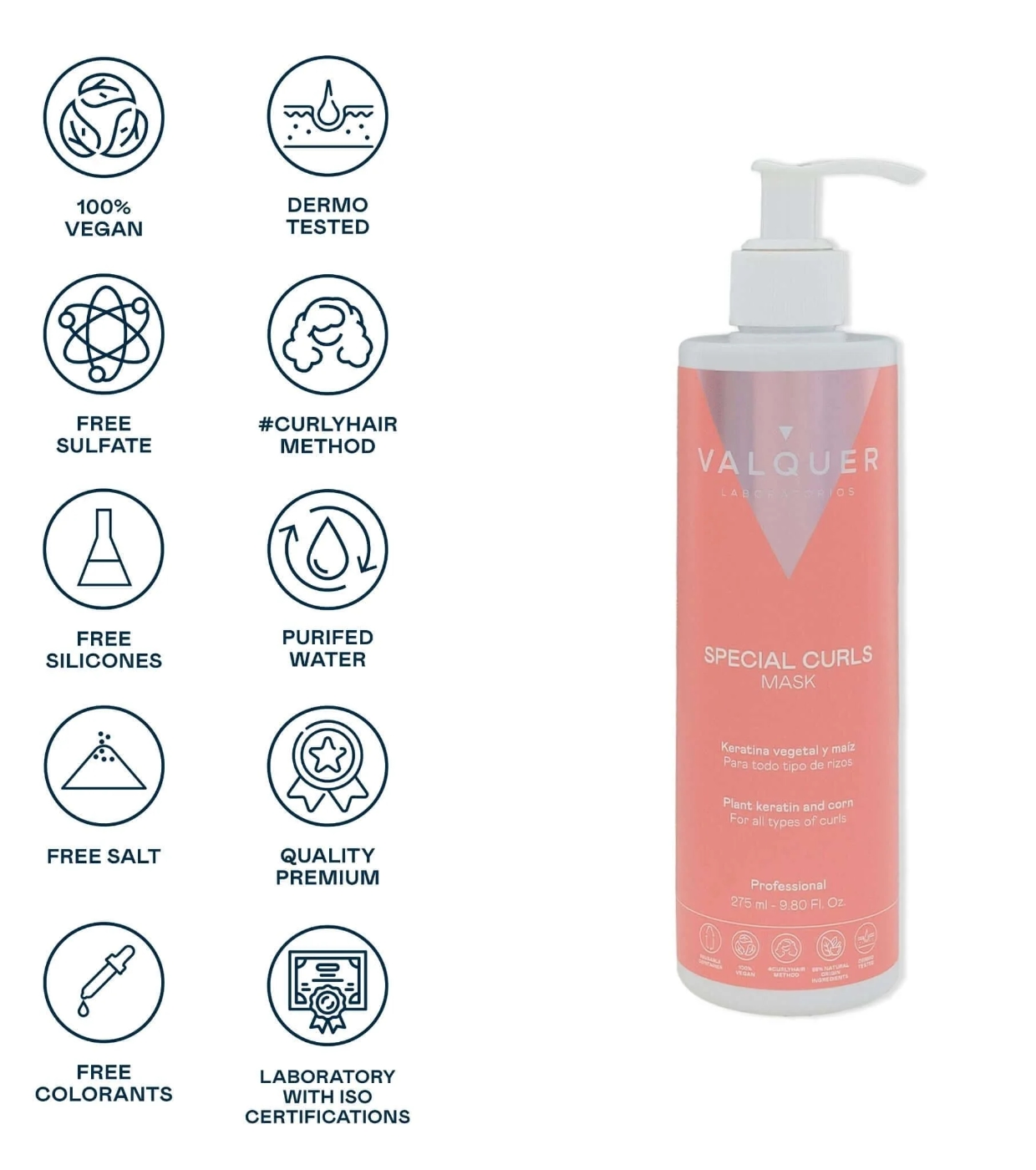Mascarilla Special Curls de Valquer, especialmente diseñada para cuidar los cabellos rizados.