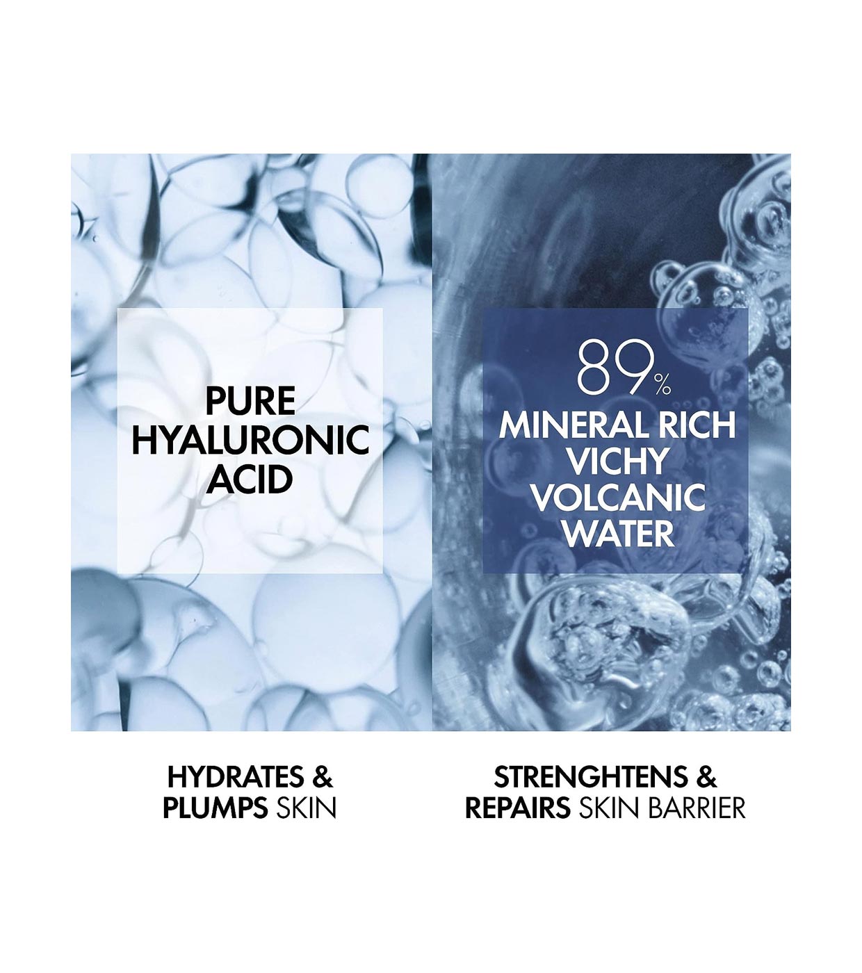 Desarrollado sin perfume y sin alcohol, Minéral 89 de Vichy es un tratamiento de sérum de ácido hialurónico en textura fluida con efectos inmediatos de hidratación e iluminación para un rostro siempre radiante y sano.