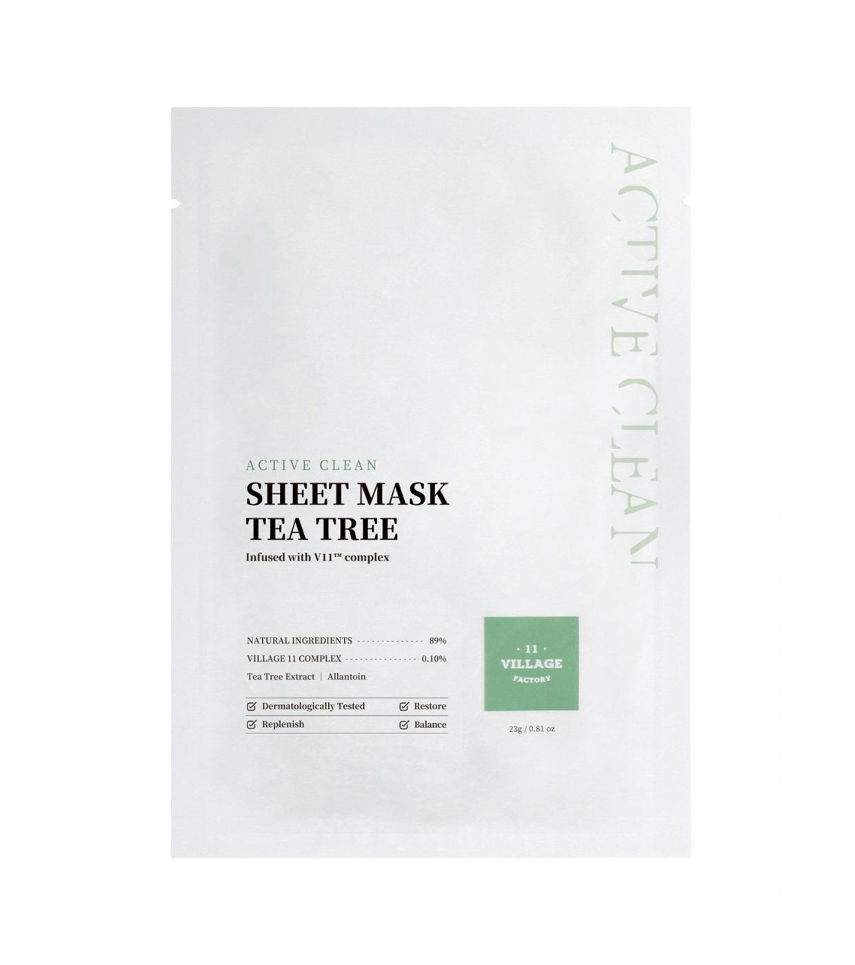 Mascarilla facial de tejido con árbol de té Active Clean de Village 11 Factory.