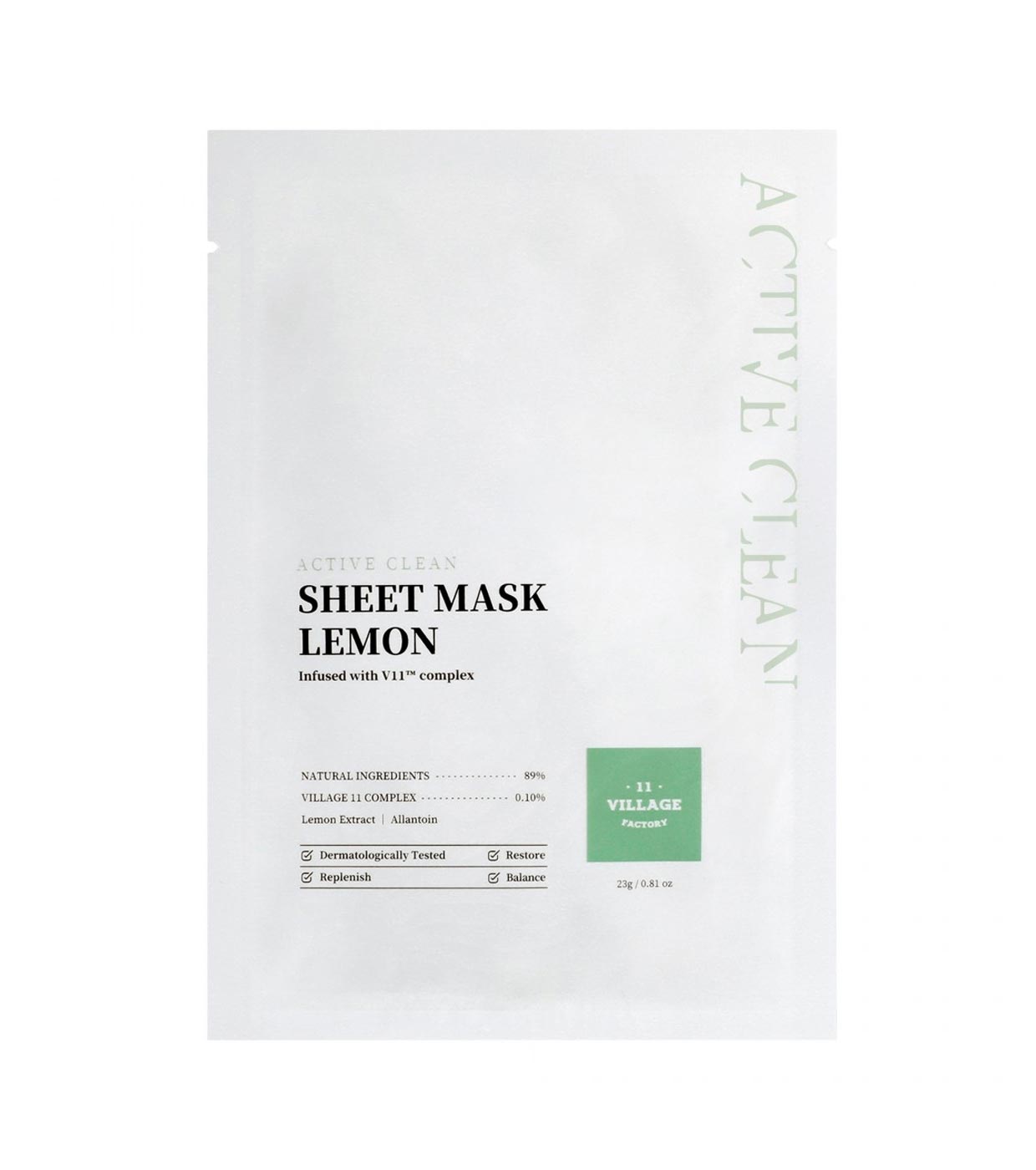 Mascarilla facial hidratante e iluminadora Sheet Mask Lemon Active Clean de Village 11 Factory.