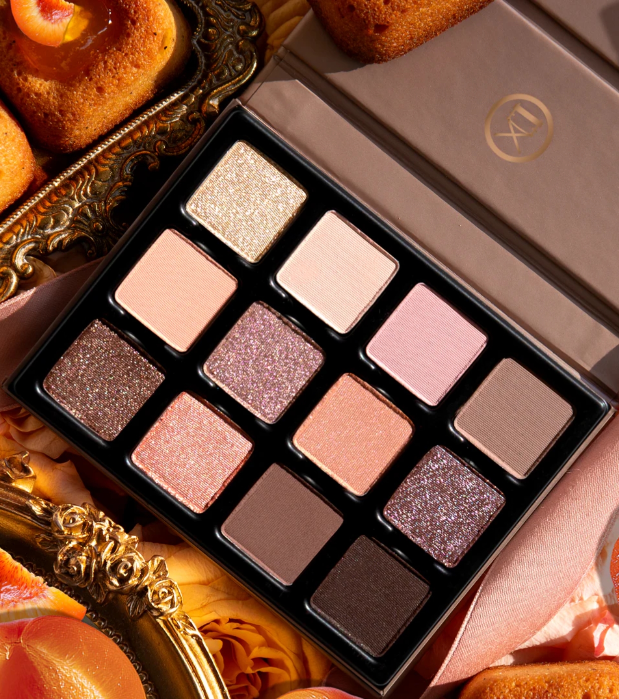 Una armonía de melocotones, bronces mielados y marrones cacao que envuelven la mirada en un resplandor cálido, sofisticado y deliciosamente indulgente.