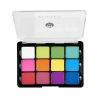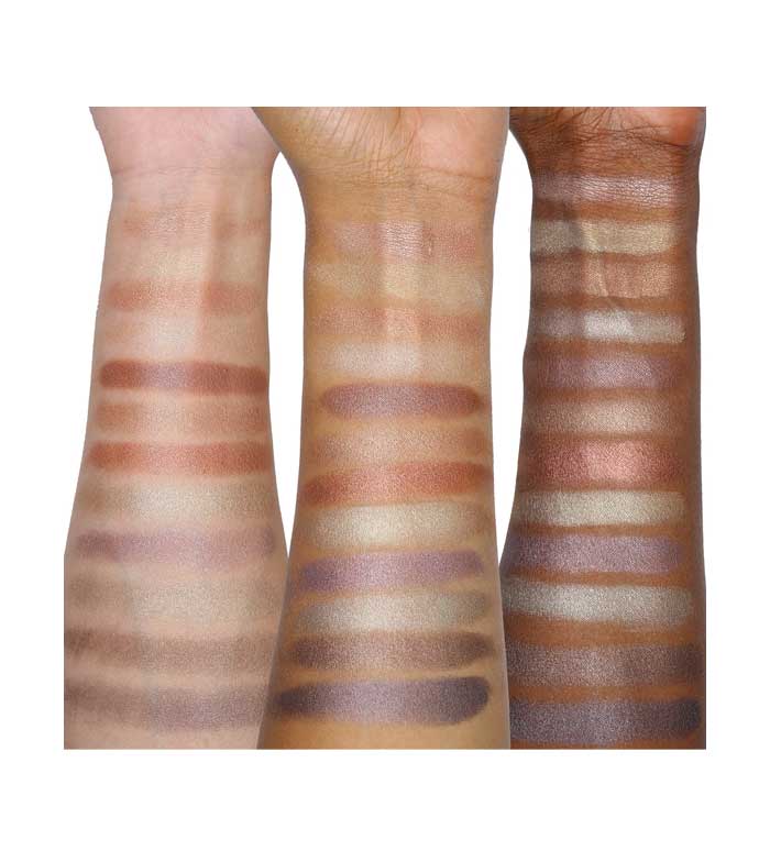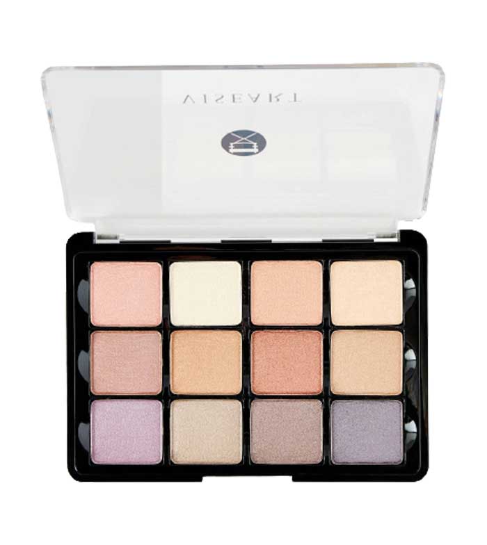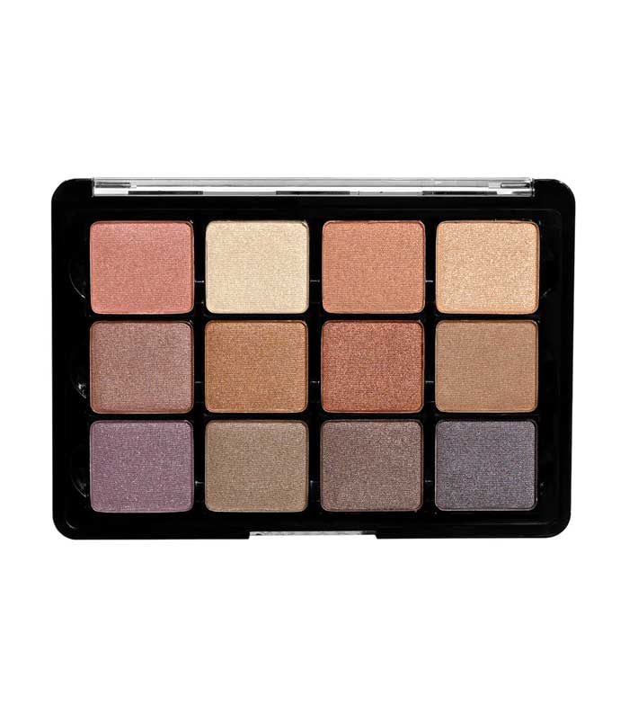 Una atrevida paleta de sombras de ojos con 12 tonos brillantes con acabados satén y metalizados.