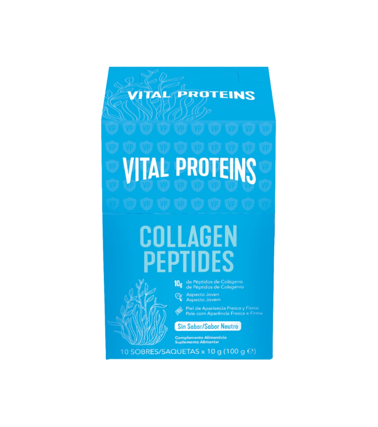 Vital Proteins Collagen Peptides está formulado con péptidos de colágeno de alta calidad, ricos en glicina, prolina e hidroxiprolina, aminoácidos clave que representan el 50% del contenido total y que no se encuentran en otras fuentes de proteína.