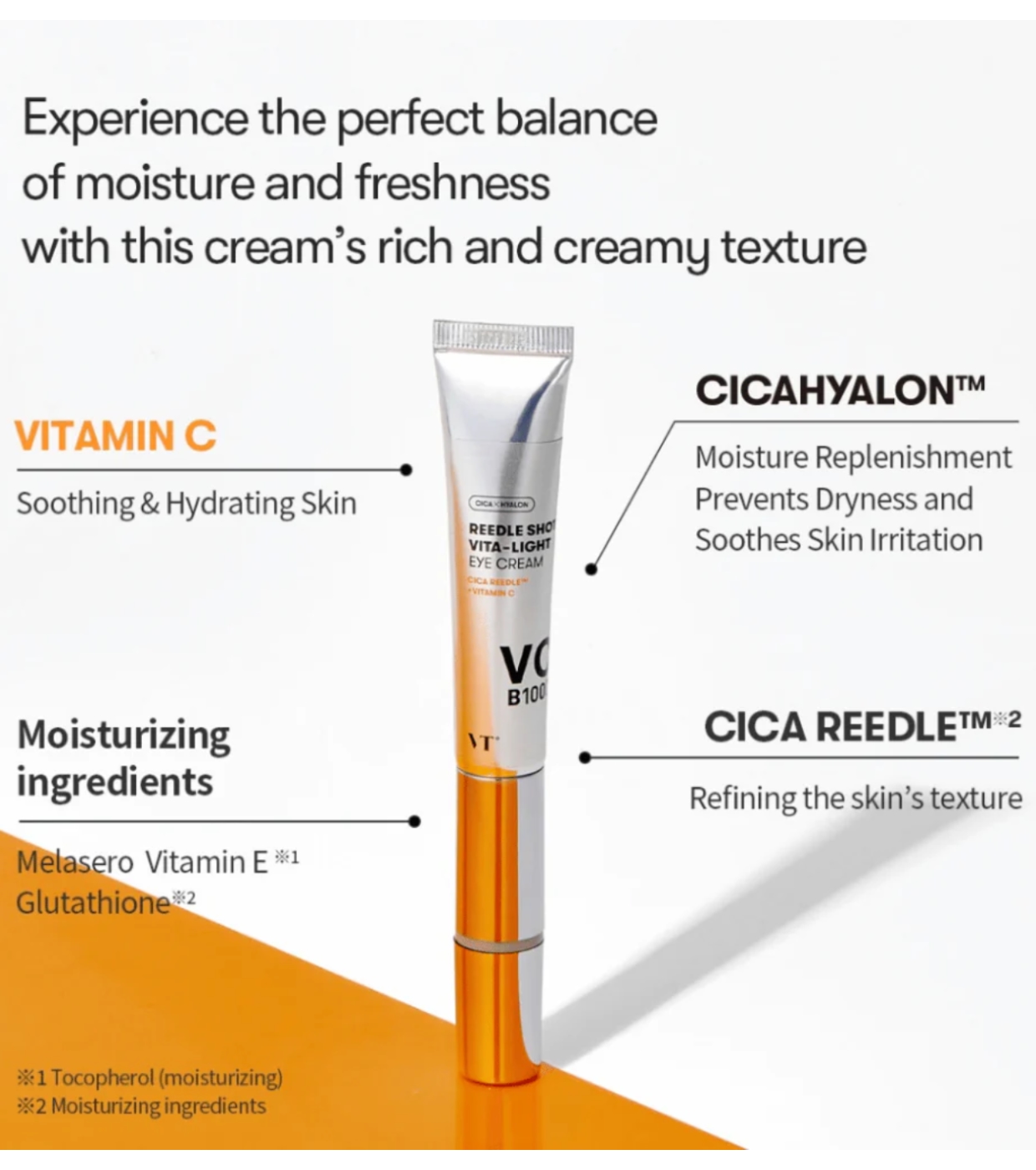Descubre la tecnología más innovadora para el cuidado del contorno de ojos con Reedle Shot Vita-Light de VT Cosmetics.