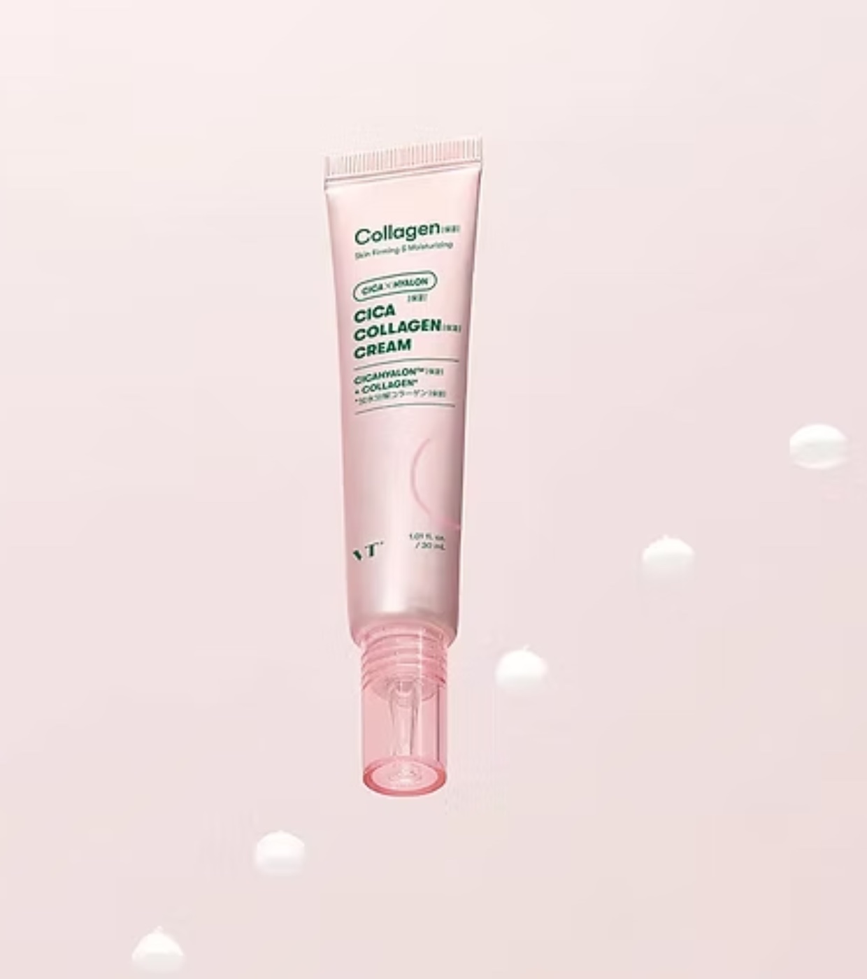 La VT Cica Collagen Cream de VT Cosmetics es una crema facial coreana de última generación que combina colágeno marino de bajo peso molecular (300 Da) y un complejo concentrado de Centella Asiática para restaurar la elasticidad, calmar irritaciones y aportar una hidratación profunda, incluso en pieles sensibles o maduras.