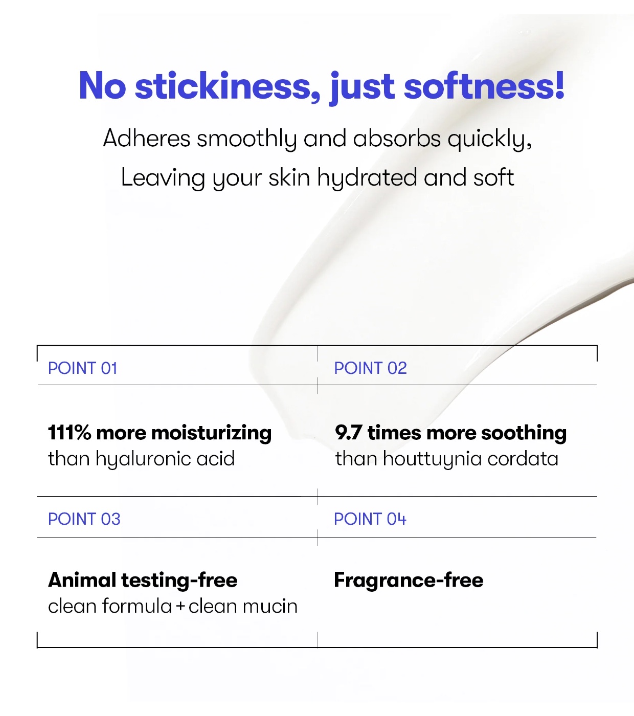 - Fórmula limpia con Clean Mucin: hidratación segura y de bajo riesgo.