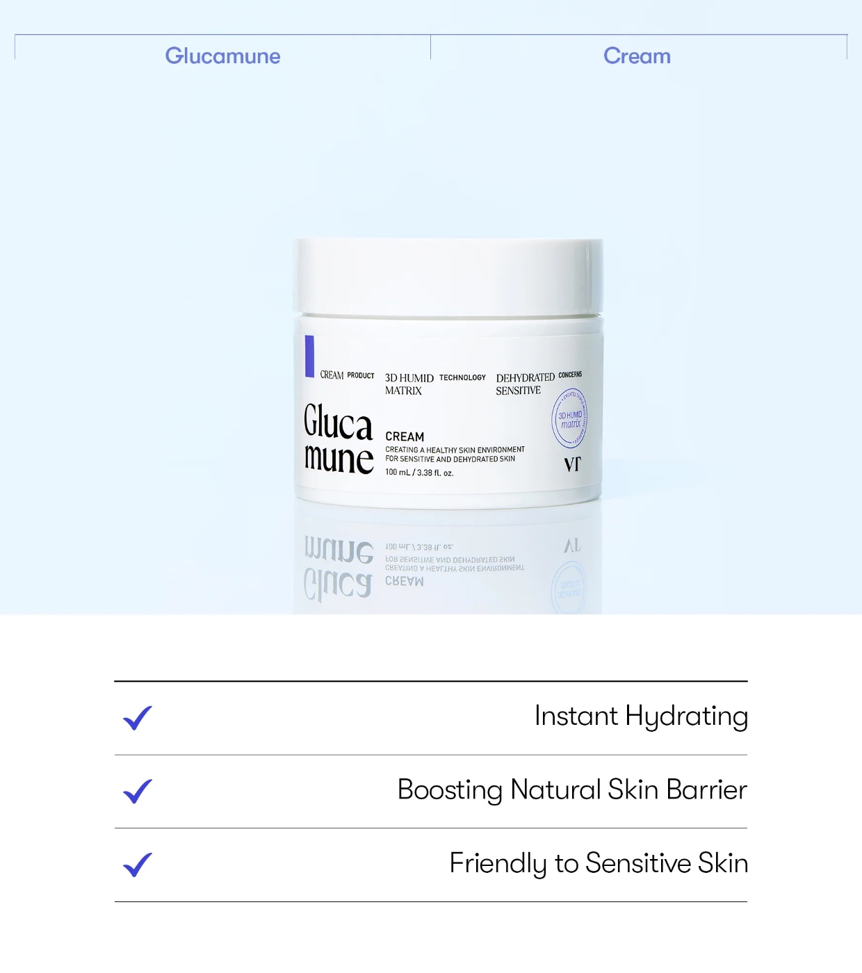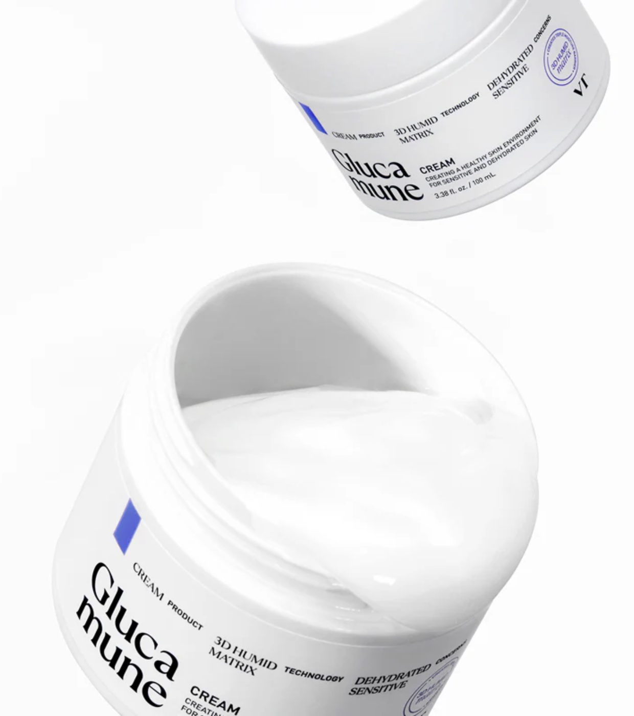 Hidrata, suaviza y calma la piel seca o deshidratada con la crema facial hidratante con Glucamune de VT Cosmetics, una crema ligera y sin fragancia diseñada para proporcionar hidratación profunda y confort inmediato incluso en las pieles más sensibles.