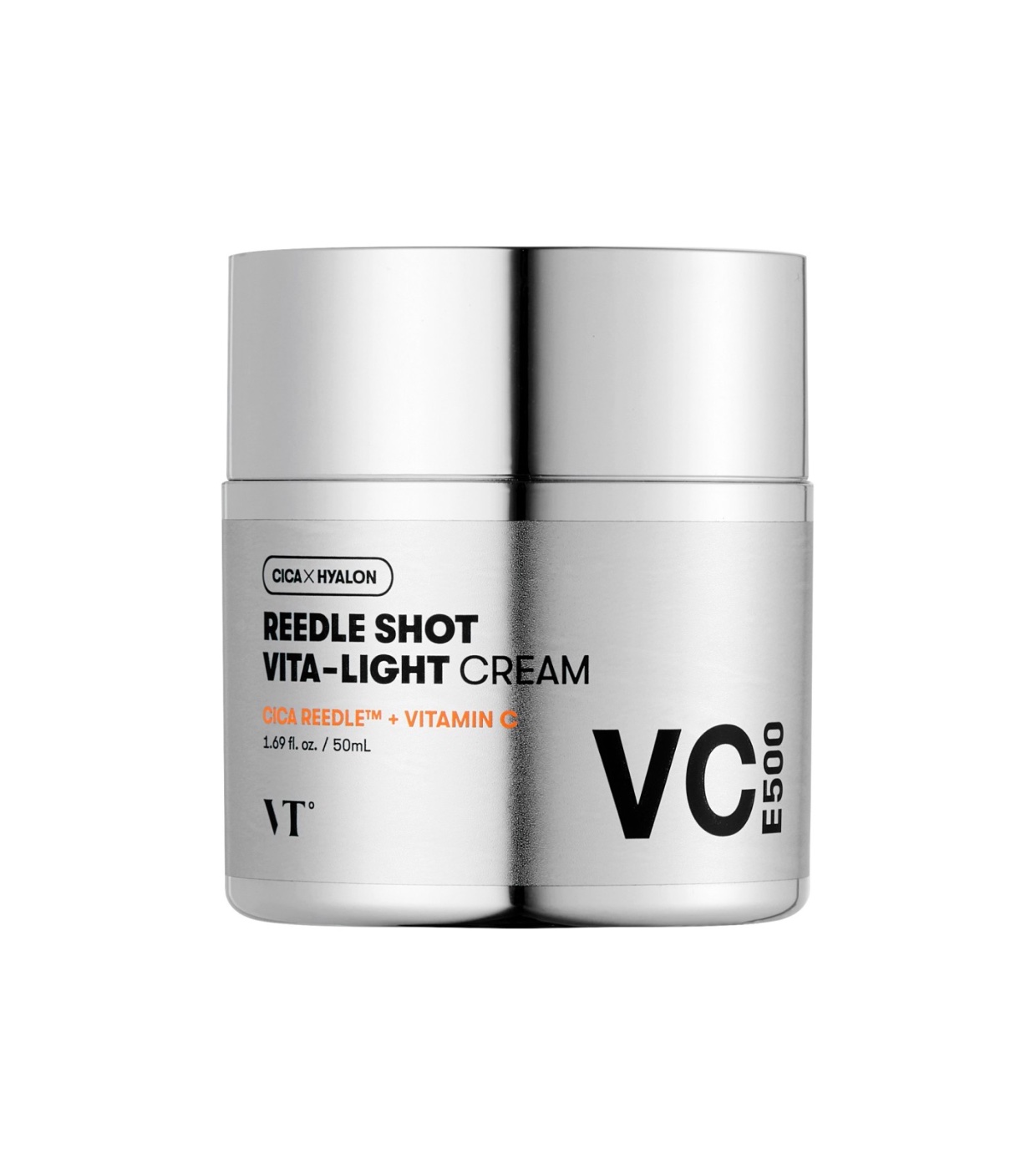 La VT Reedle Shot Vita-Light Cream de VT Cosmetics es una crema facial iluminadora que combina la innovadora tecnología Cica Reedle™ con un potente complejo vitamínico para transformar la piel apagada, fatigada o con tono desigual.