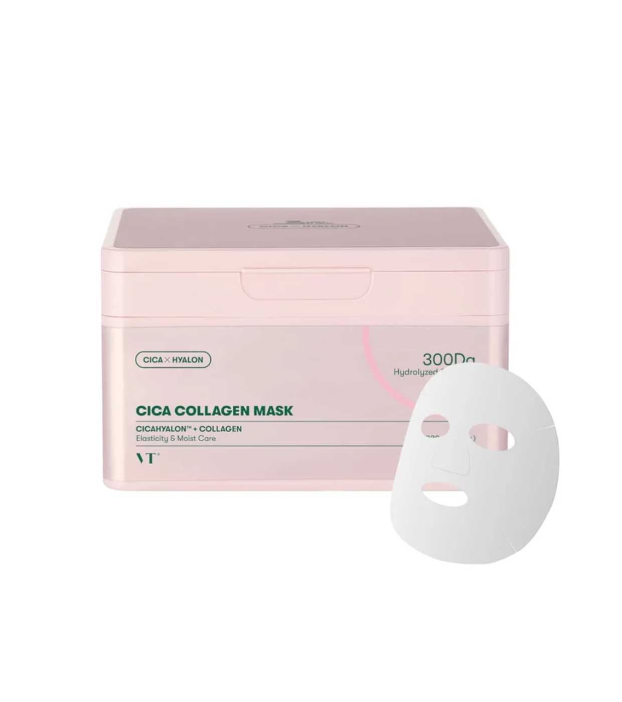La mascarilla facial Cica Collagen Mask de VT Cosmetics es un tratamiento intensivo que combina la ciencia del cuidado de la piel con ingredientes altamente efectivos.