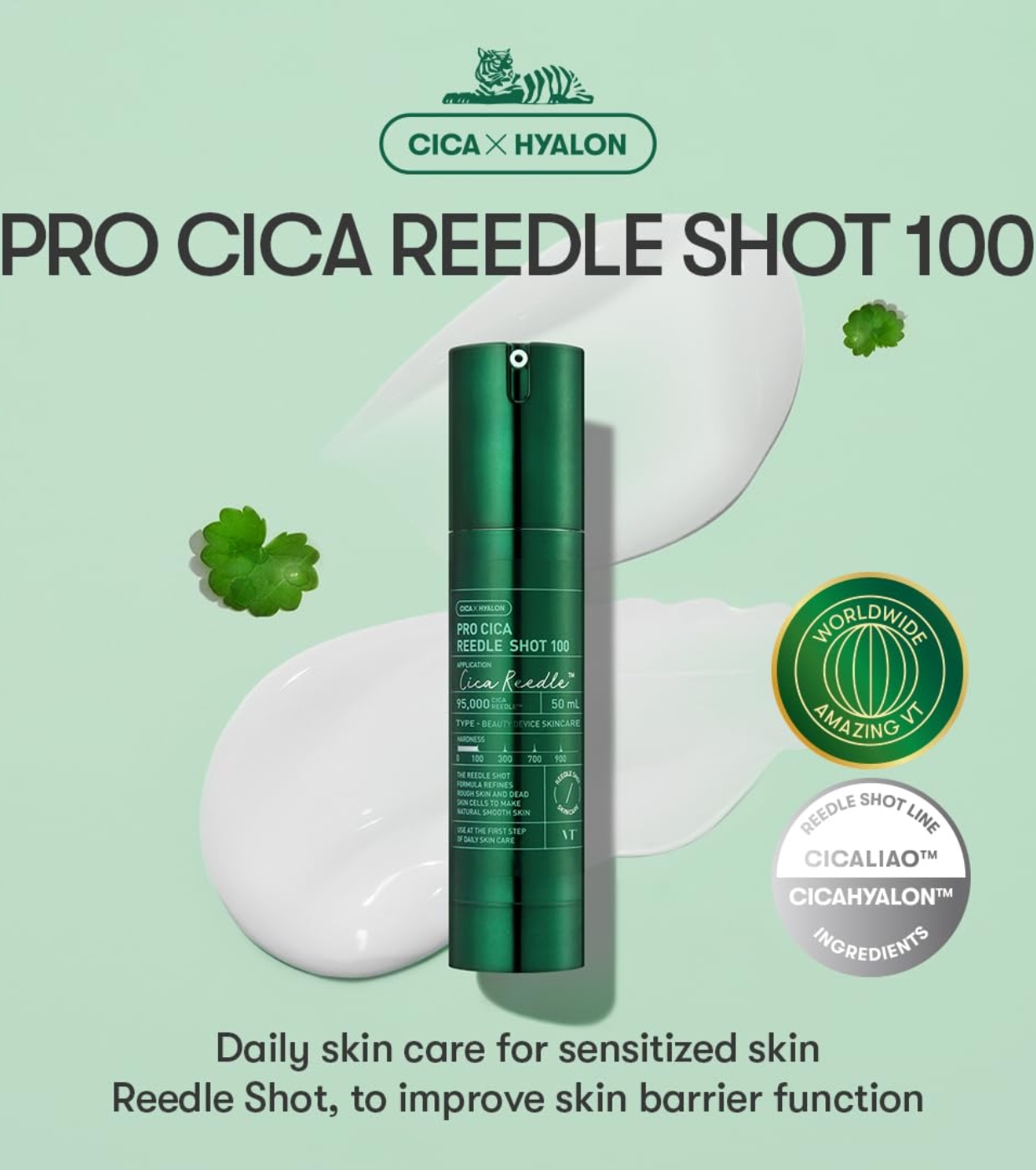 El revolucionario sérum calmante Pro Cica Shot 100 de VT Cosmetics, cuenta con ingredientes avanzados como Cica reedle.