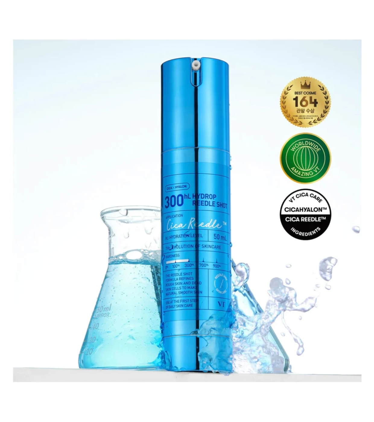 El sérum Hydrop Reedle Shot 300hL de VT Cosmetics es un tratamiento avanzado que combina la innovadora tecnología de microagujas Cica Reedle™ con cápsulas hidratantes de última generación.