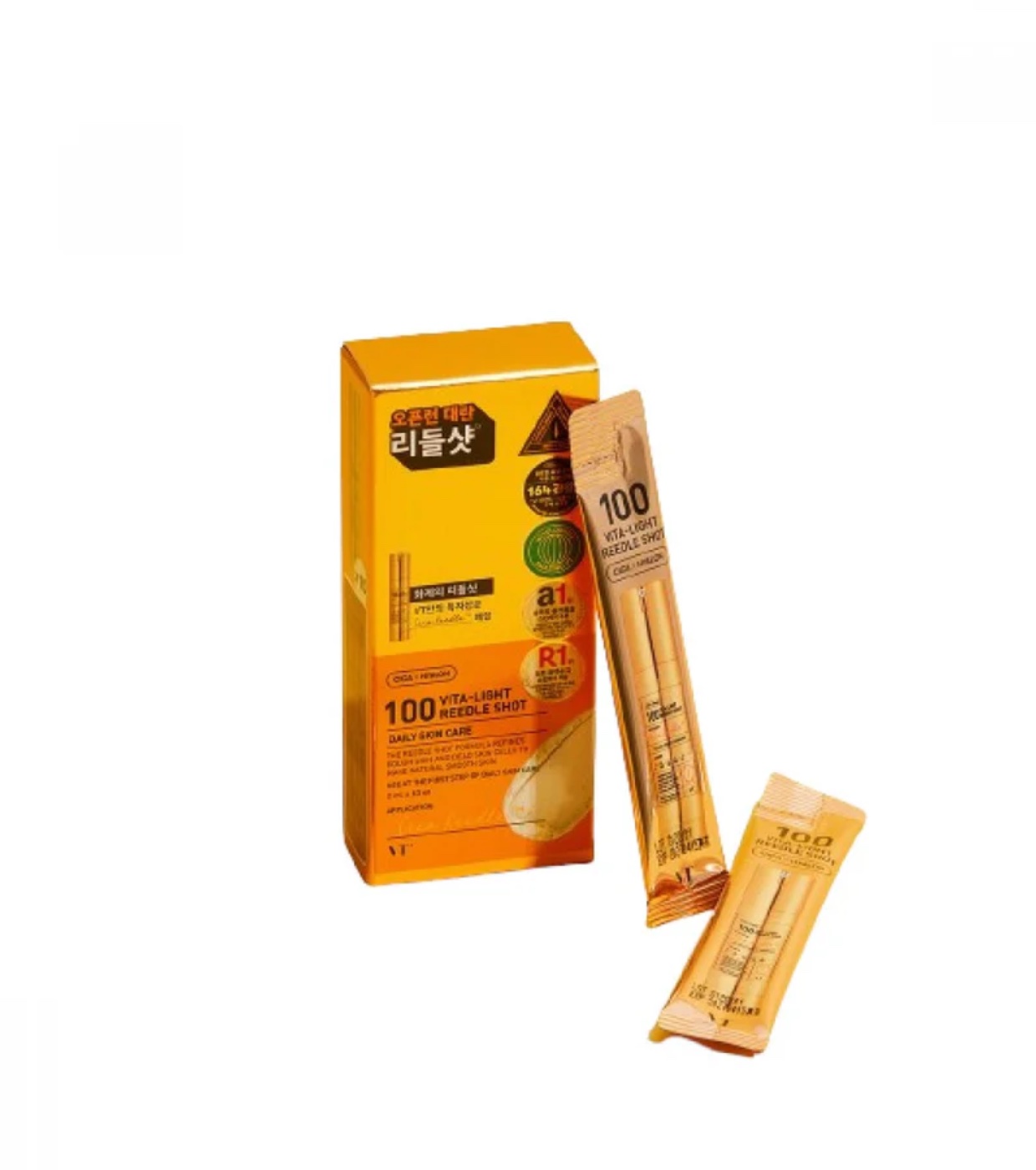 El sérum de VT Cosmetics Vita-Light Reedle Shot 100 utiliza la innovadora tecnología Cica Reedle™, de microagujas con extracto de centella asiática para penetrar suavemente en la epidermis y maximizar la absorción de ingredientes activos.