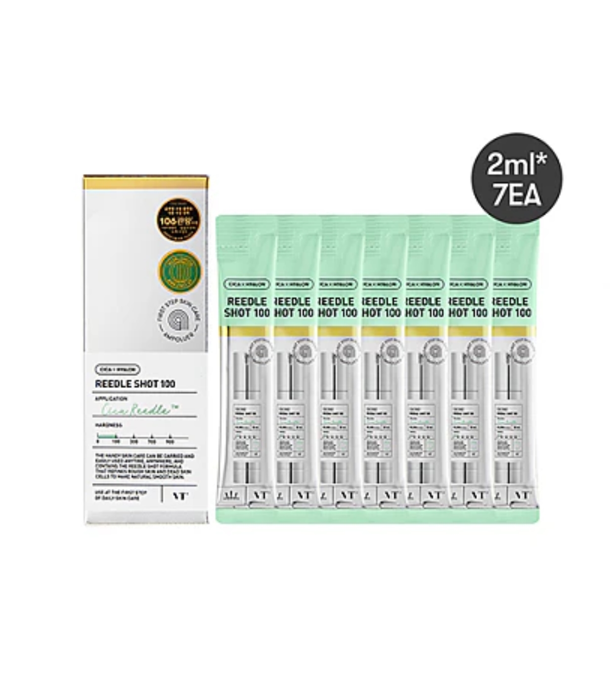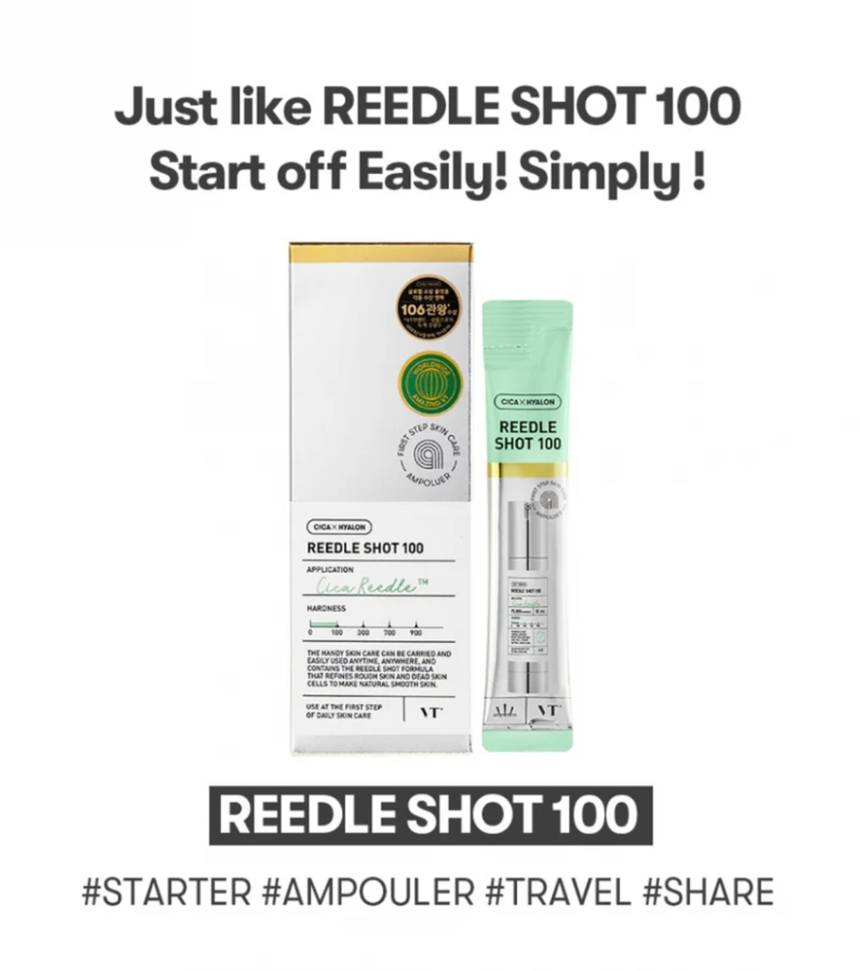 Descubre la revolución en el cuidado facial con sérum renovador en ampollas Reedle Shot 100 de VT Cosmetics en formato de 10 sobres.