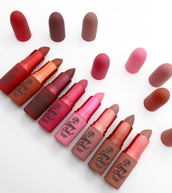¡La gama de barras de labios Lippy Chic! de W7 contiene 8 tonos de barras de labios clásicos en un acabado ultra cremoso!