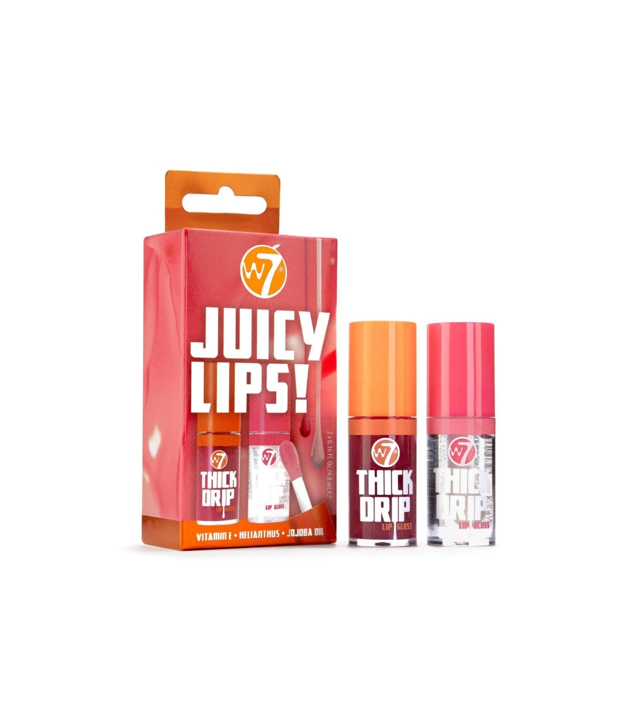 Dale a tus labios un acabado jugoso e hidratado con el W7 Juicy Lips Set, un pack de 2 gloss Thick Drip que aportan brillo intenso, suavidad y un efecto volumen irresistible.