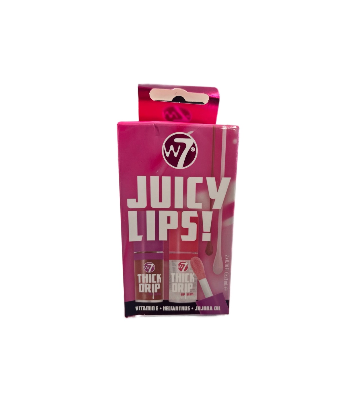 Dale a tus labios un acabado jugoso e hidratado con el W7 Juicy Lips Set, un pack de 2 gloss Thick Drip que aportan brillo intenso, suavidad y un efecto volumen irresistible.