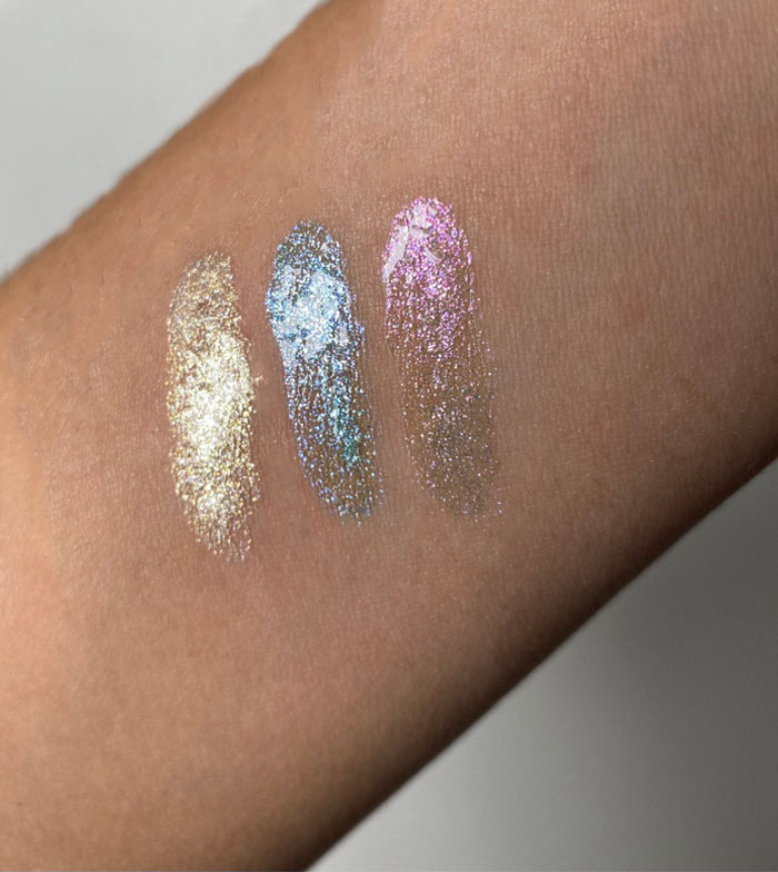 Noe557El tono del swatch que se ve en la foto, es según sale del bote que hay difuminar y entonces ya no tiene color. SOLO la purpurina. Es purpurina muy grande diluido en un líquido aceitoso. En la cara no tiene sentido (a no ser que quieras dar la impresión que vienes de una fiesta donde te ha caido un montón de brillantina de los confetis y artículos de fiesta). En los ojos tampoco al ser aceitoso es como la manteca desmaquillante te emborrona todo. Debajo tampoco puedes poner nada porque el aceite se lo come... Un fiasco la verdad