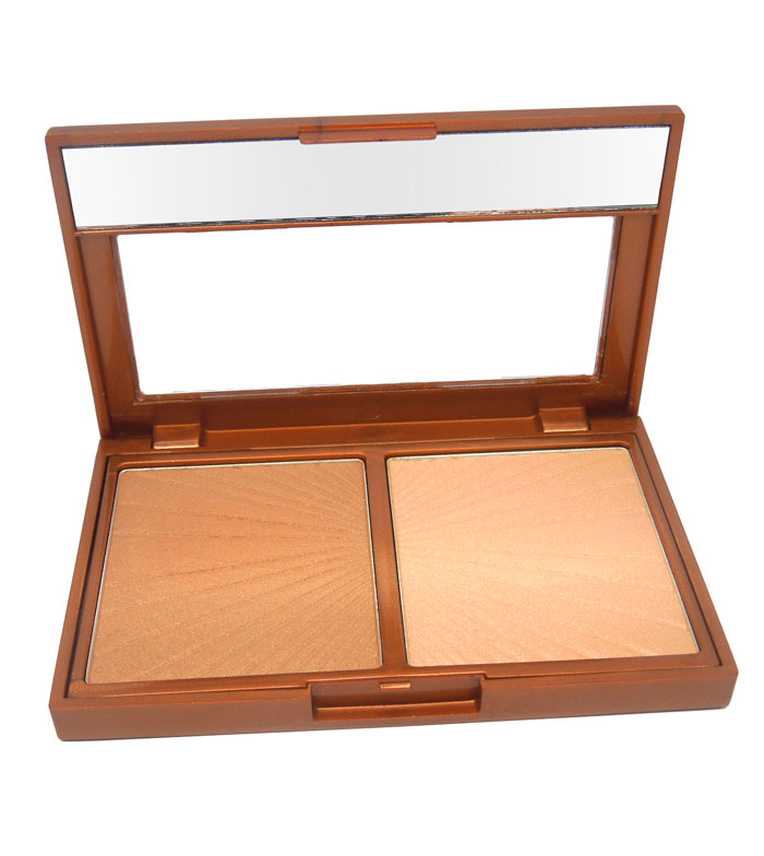 Paleta duo que contiene bronceador satinado e iluminador con brillo, ambos con reflejos dorados muy sutiles y una pigmentación media. Puedes contornear e iluminar tu rostro creando efectos que te favorezcan además de dejar un acabado natural y sofisticado.