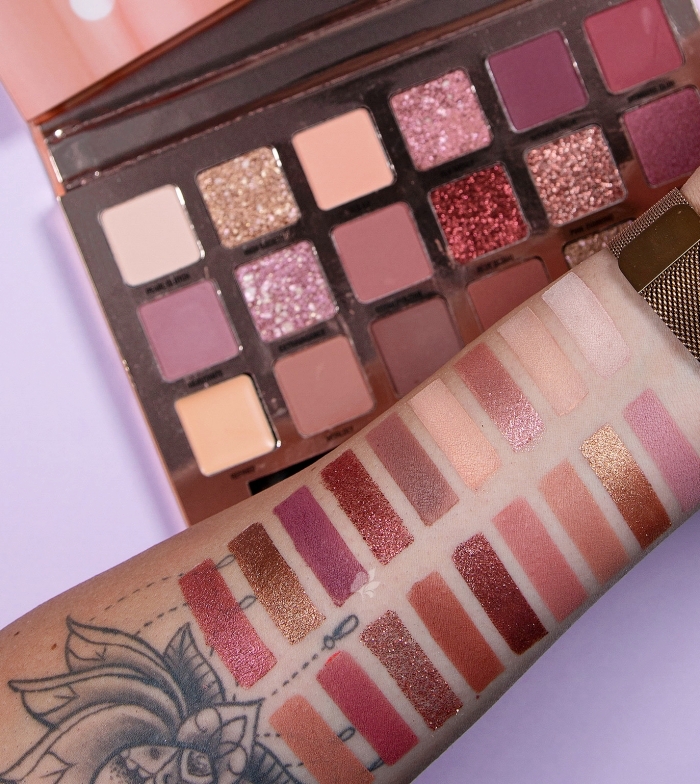 La paleta presenta una gama de colores neutros, nudes, rosas suaves, marrones y dorados.