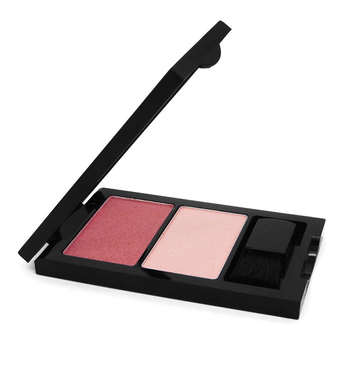 Esta paleta incluye un tono rosa suave y otro intenso, ambos con un toque de brillo dorado.