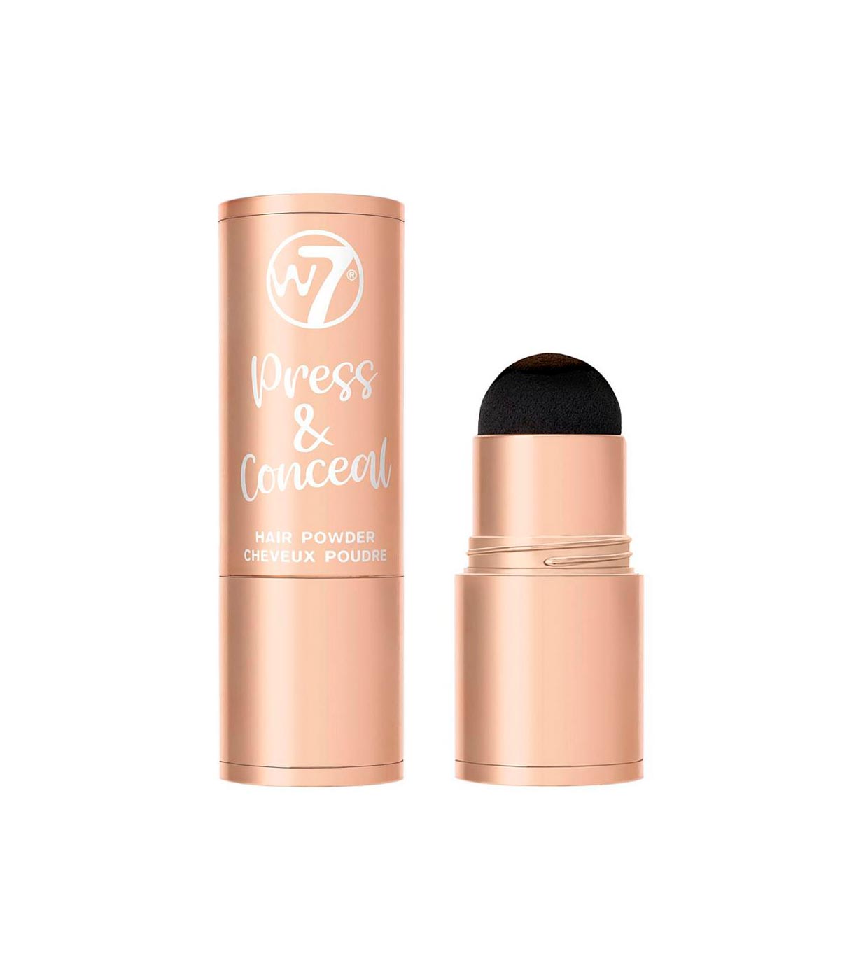 Los polvos para cabello Press and Conceal de W7 se tratan de un polvo superligero que se puede presionar en el nacimiento del pelo o en el cuero cabelludo para cubrir las raíces y fijar rápidamente el nacimiento del pelo.