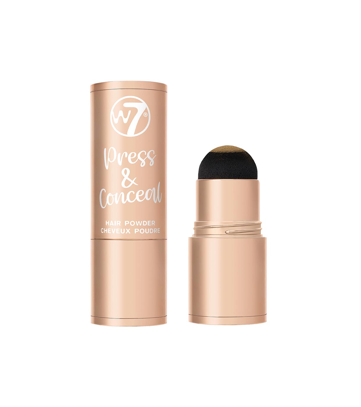 Los polvos para cabello Press and Conceal de W7 se tratan de un polvo superligero que se puede presionar en el nacimiento del pelo o en el cuero cabelludo para cubrir las raíces y fijar rápidamente el nacimiento del pelo.