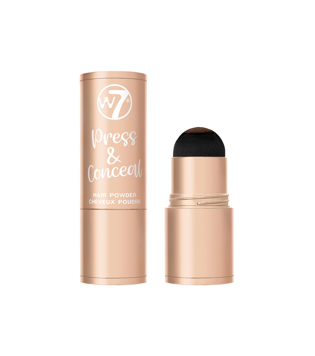 Los polvos para cabello Press and Conceal de W7 se tratan de un polvo superligero que se puede presionar en el nacimiento del pelo o en el cuero cabelludo para cubrir las raíces y fijar rápidamente el nacimiento del pelo.