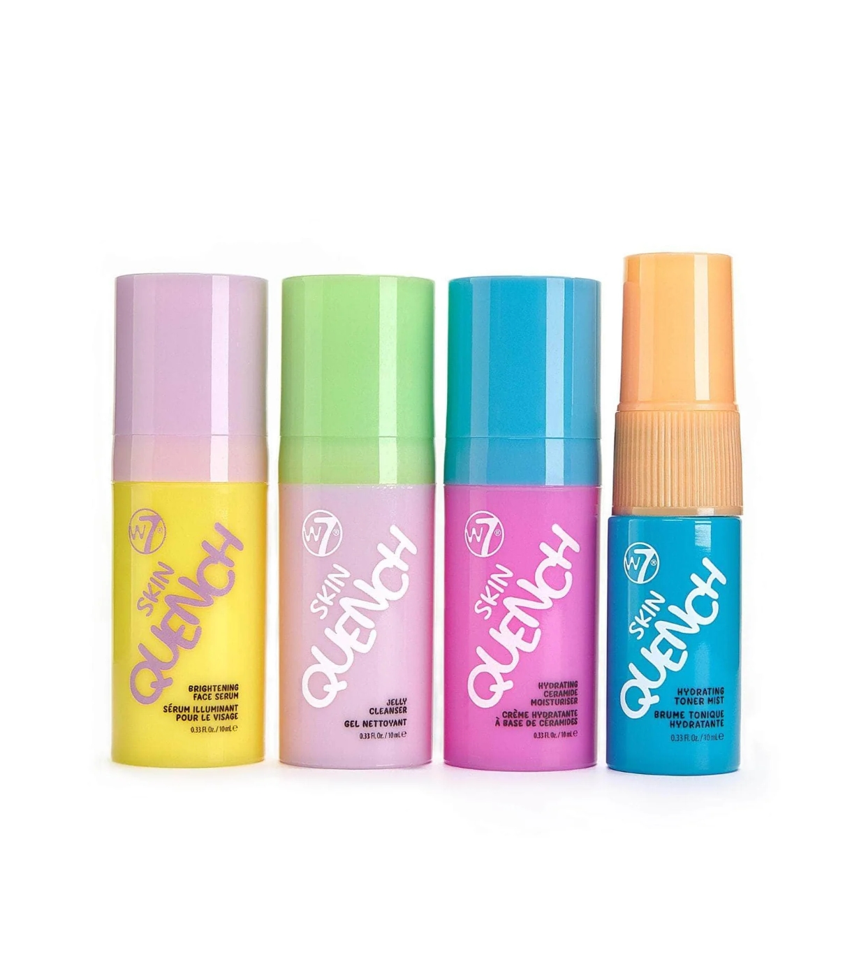 Hidrata y refresca tu piel en cualquier momento con el W7 Skin Quench Cuties Set, un pack de 4 sticks faciales en formato mini, perfectos para llevar siempre contigo.