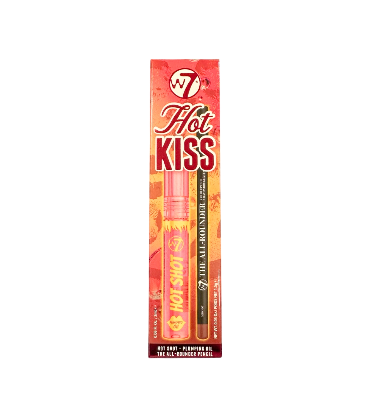 Consigue unos labios irresistibles con el W7 Hot Kiss Duo, un set imprescindible que combina un aceite voluminizador y un lápiz multiusos para un acabado sexy y definido.
