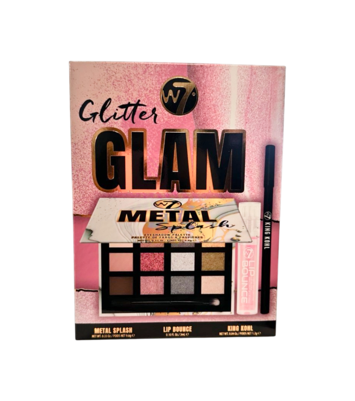 Brilla como nunca con el W7 Glitter Glam Set, un kit de maquillaje completo para crear looks impactantes y llenos de glamour.