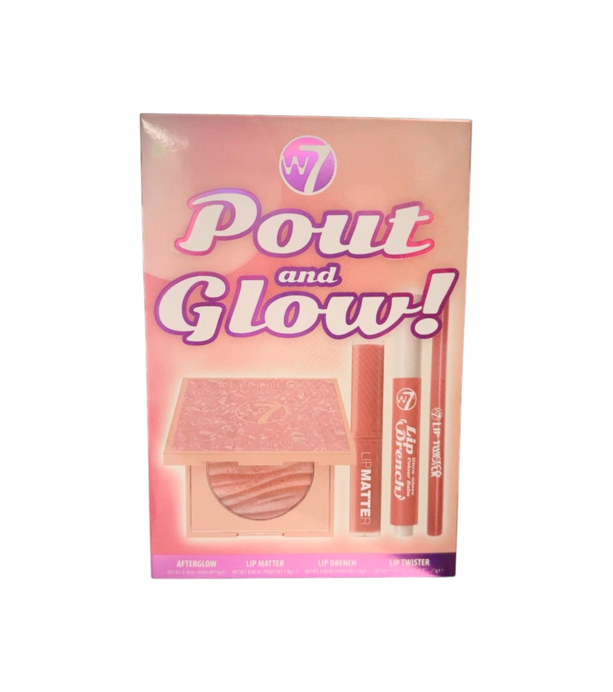 Luce un rostro radiante y unos labios irresistibles con el W7 Pout and Glow Set, un kit completo que combina maquillaje para labios y rostro en tonos favorecedores.