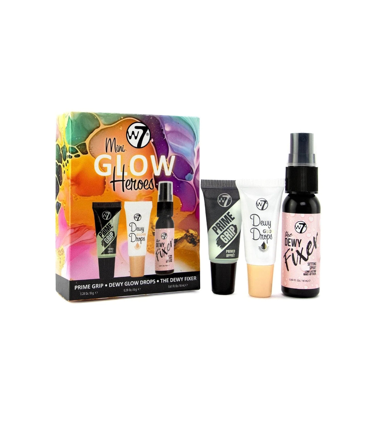 Luce una piel radiante con el W7 Mini Glow Heroes Set, un kit imprescindible que reúne tres productos en formato mini para preparar, iluminar y fijar tu maquillaje.