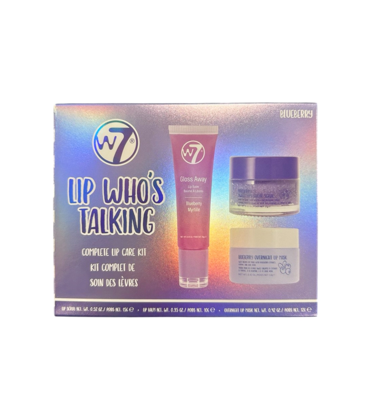 Mima tus labios con el W7 Lip Who’s Talking Set, un kit completo de cuidado labial con aroma a arándanos que incluye todo lo necesario para mantenerlos suaves, hidratados y radiantes.