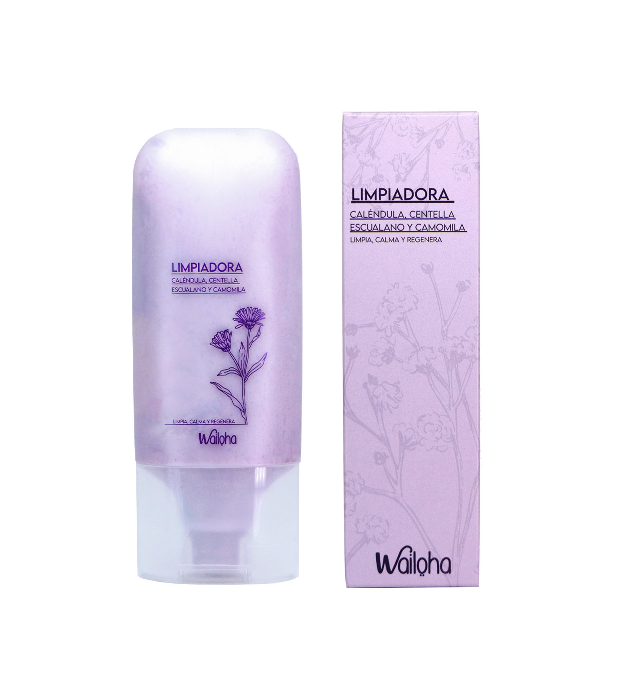 Descubre el cuidado indulgente del Limpiador Calmante y Regenerador de Wailoha, una experiencia única en limpieza facial enriquecida con caléndula, centella asiática, escualano, camomila y boswellia serrata.