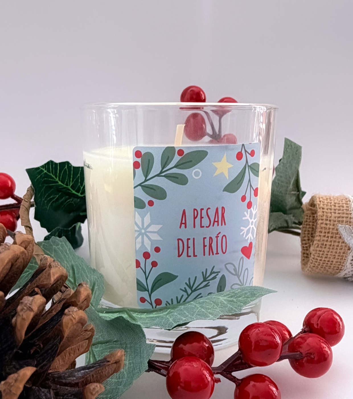 Elaborada con 100% cera de soja natural y mecha de algodón trenzado y encerado, garantiza una combustión limpia y uniforme.