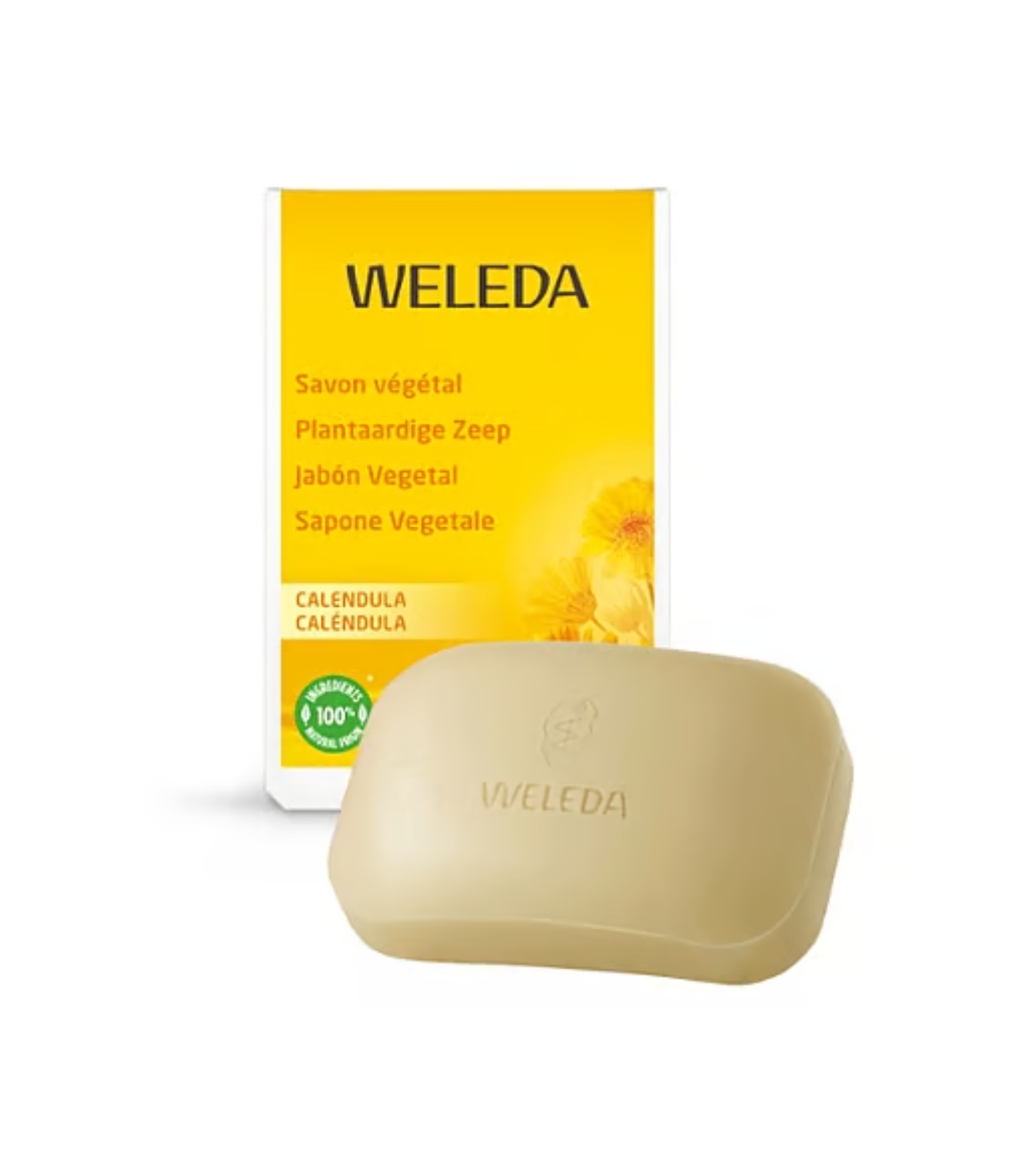 El jabón vegetal de caléndula contiene extractos de caléndula y de la flor de manzanilla, de ahí su fino aroma y su efecto nutritivo especialmente para la piel delicada y sensible del bebé.