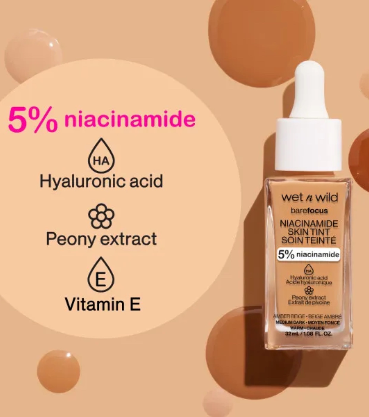 Wet N Wild - Base de maquillaje Bare Focus Niacinamide Skin Tint - Cream Beige