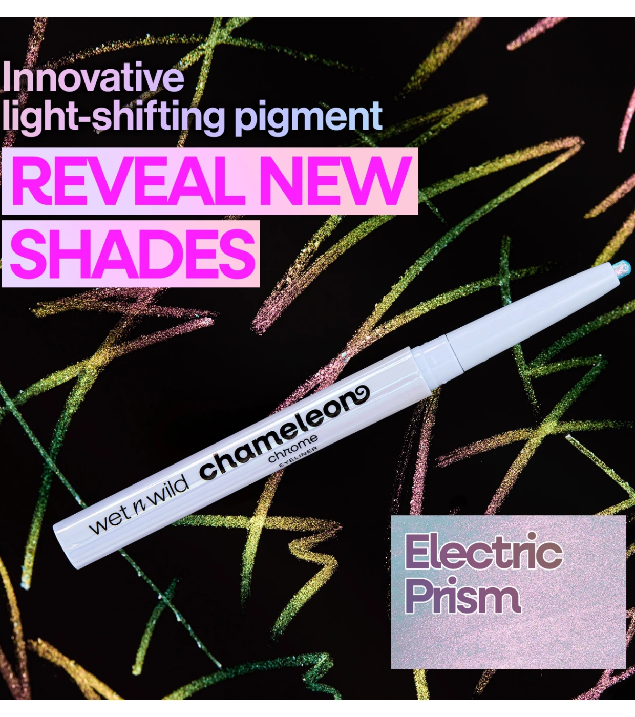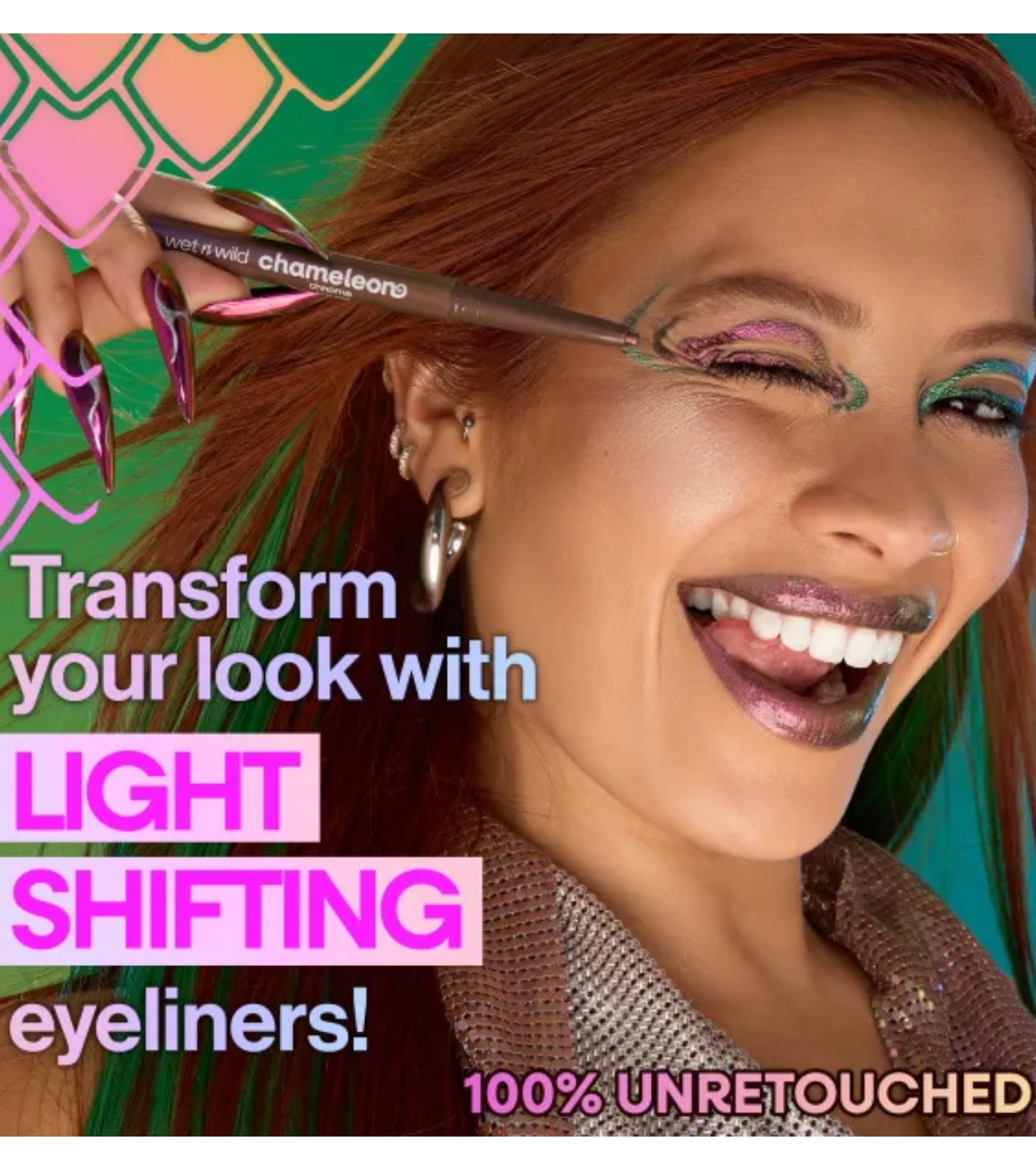 ¡Exprésate con un look tan cambiante como tu luz! Los delineadores de ojos Chameleon Chrome de wet n wild reinventan la forma de resaltar tu mirada con pigmentos fotorreactivos que cambian de color según la iluminación.