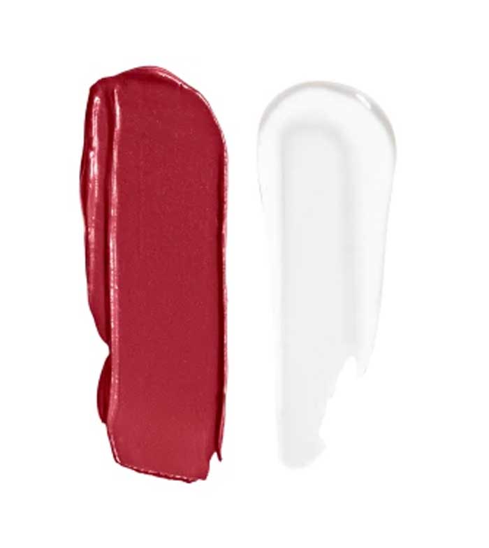 Este labial de dos puntas proporciona un tono intenso de larga duración en un extremo y un acabado en brillo en el otro.