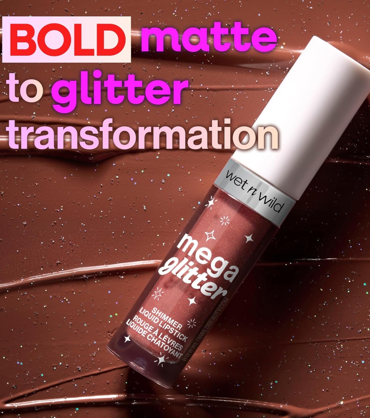¡Prepárate para deslumbrar! El Mega Glitter Shimmer Liquid Lipstick de wet n wild transforma tu look en segundos con su fórmula innovadora que pasa de un acabado mate a un brillo deslumbrante simplemente al presionar los labios.