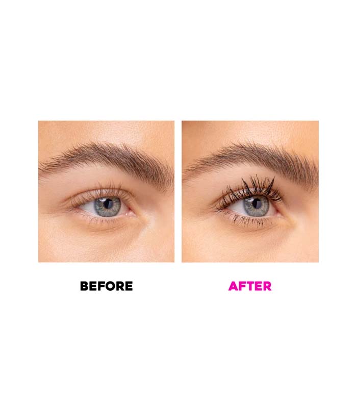 Una máscara de pestañas súper voluminizadora, alargadora e intensamente negra.