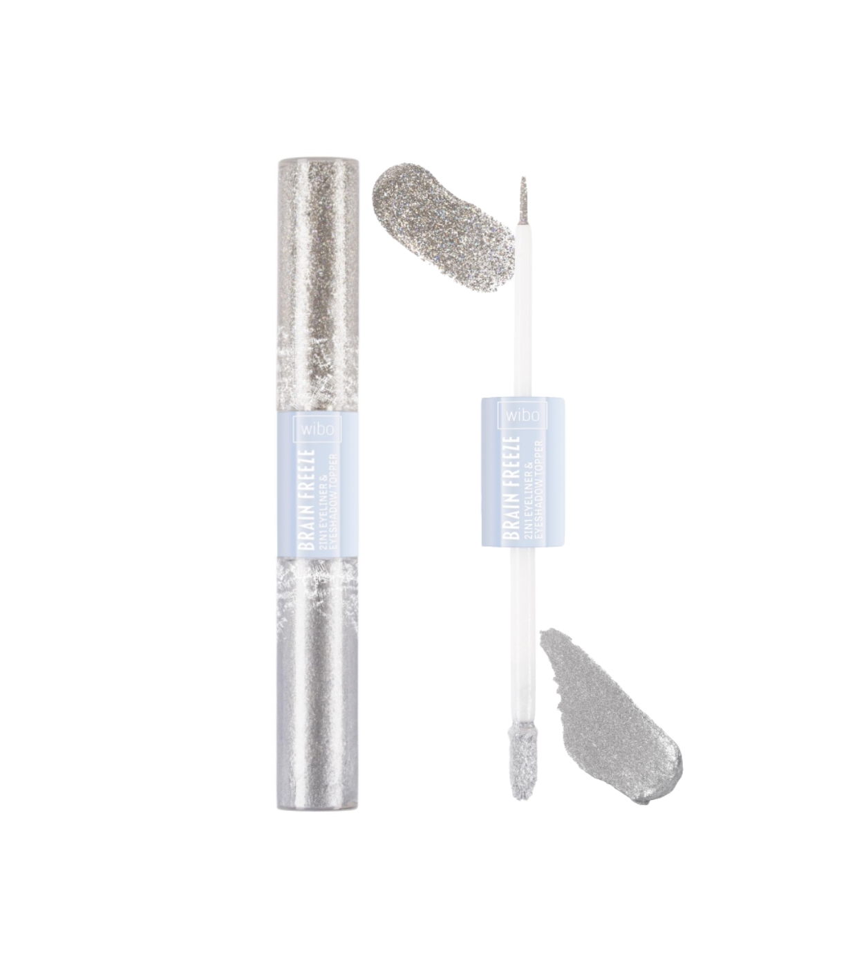 Transforma tu look con este innovador dúo de delineador + Sombra de ojos con glitter Brain Freeze de la colección All Ice On Me de Wibo, diseñado para realzar tus ojos y cejas con un toque de glamour.