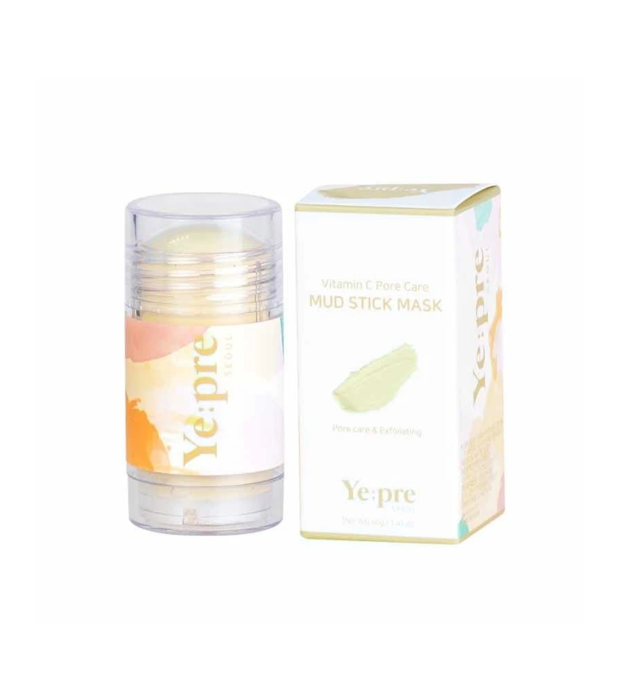 Esta mascarilla facial de arcilla en stick Vitamin C Pore Care de Ye:pre, cuida los poros, elimina puntos negros y células muertas, controla el exceso de sebo, unifica el tono e ilumina, proporcionando frescura a la piel.