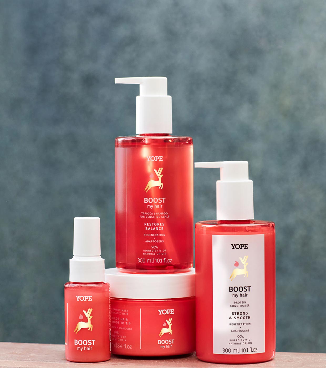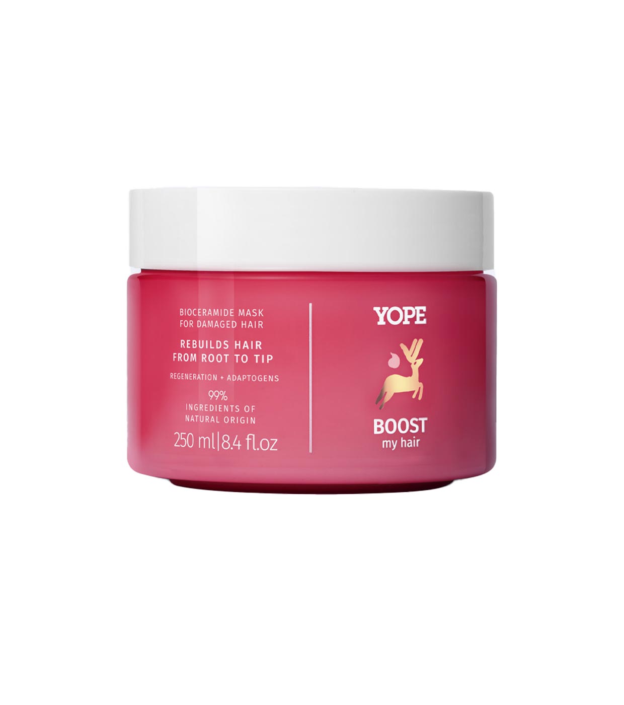 Mascarilla natural de bioceramida para cabellos dañados Boost My Hair de Yope.