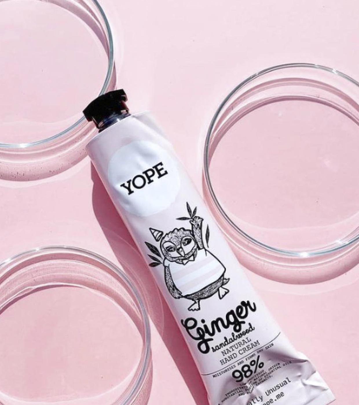 La Crema de Manos Natural de Jengibre y Sándalo de Yope calma rápidamente la piel que necesita hidratación y le devuelve su elasticidad.