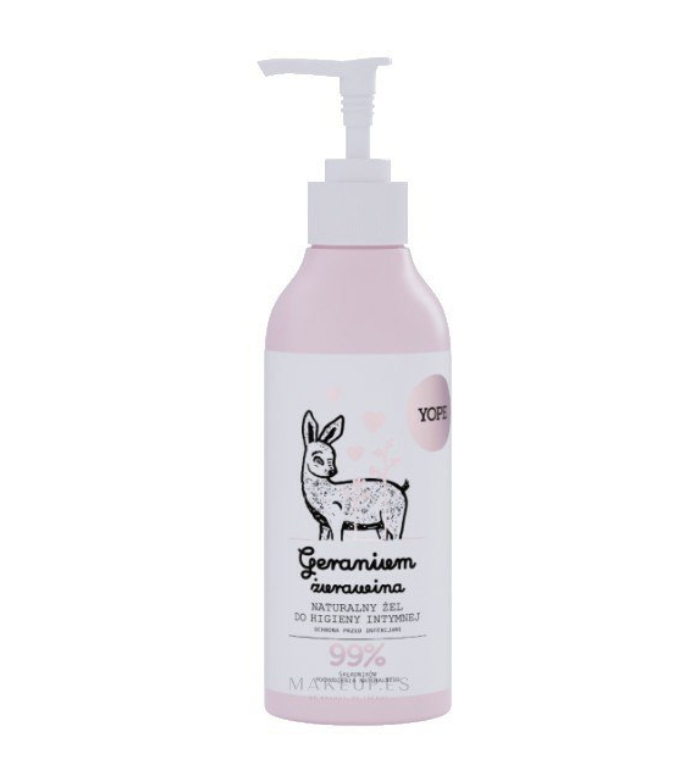 El gel íntimo de geranio y arándano de Yope, es un gel espumoso y delicado que fortalece suavemente el microbioma para proteger las áreas sensibles de la irritación.