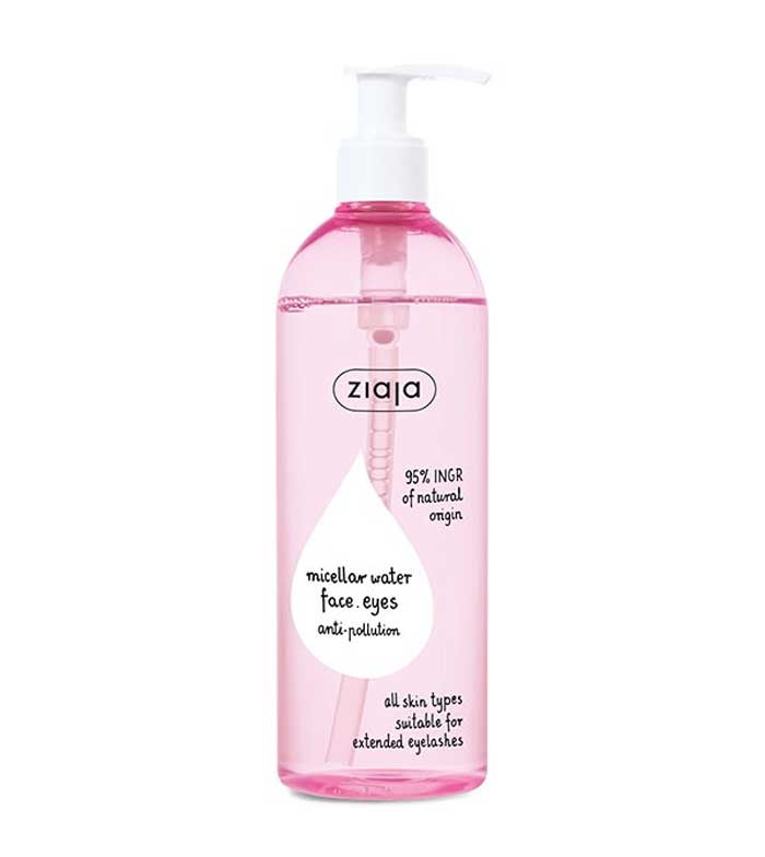 Agua micelar anti polución para rostro y ojos de Ziaja, indicada para todo tipo de pieles.
